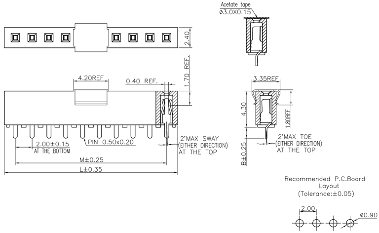 P/H2.0mm 單排排母 FA101